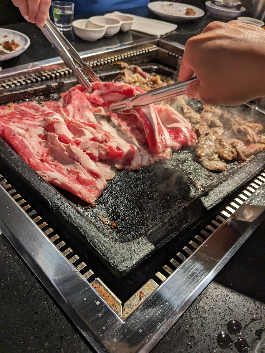 The service at Star BBQ is outstanding, with attentive staff who ensure that your grilling experience goes smoothly. From quick food rotations to frequent grill changes, the staff makes sure that you have everything you need for a fantastic meal. The ambiance is lively and fun, with K-pop music playing in the background, adding to the overall dining experience.