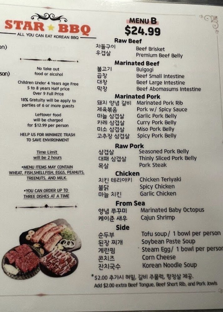 Star BBQ Menu
